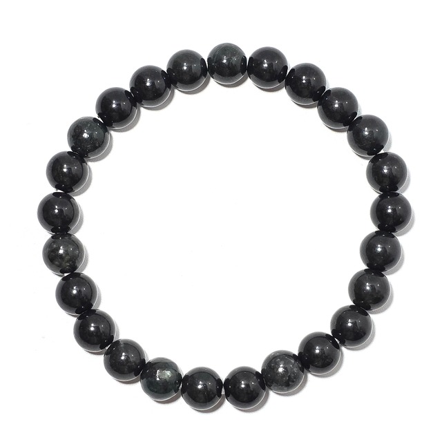 糸魚川翡翠は日本の国石であり日本最古の宝石です。 糸魚川翡翠のブレスレット 石質・艶の良い美しい翡翠です 個性的な黒模様の綺麗な翡翠 透過はやや微弱です ⚫︎糸魚川翡翠ブレスレット BR0404 ⚫︎産地 糸魚川市小滝産 ⚫︎サイズ 翡翠玉:8㍉×24個 16~17cm ⚫︎重さ 21g ⚫︎色 黒 ⚫︎糸魚川翡翠で制作された証明として品質保証書をお付け致します。 【天然石の特性をご理解下さい】 その特性上不純物の内包や色のムラ、微細なひび等がある場合がございます。画像については可能な限り現物に近い色での撮影を心掛けておりますが、光の具合、カメラやモニターの機種等により実物と色が異なる場合もございます。
