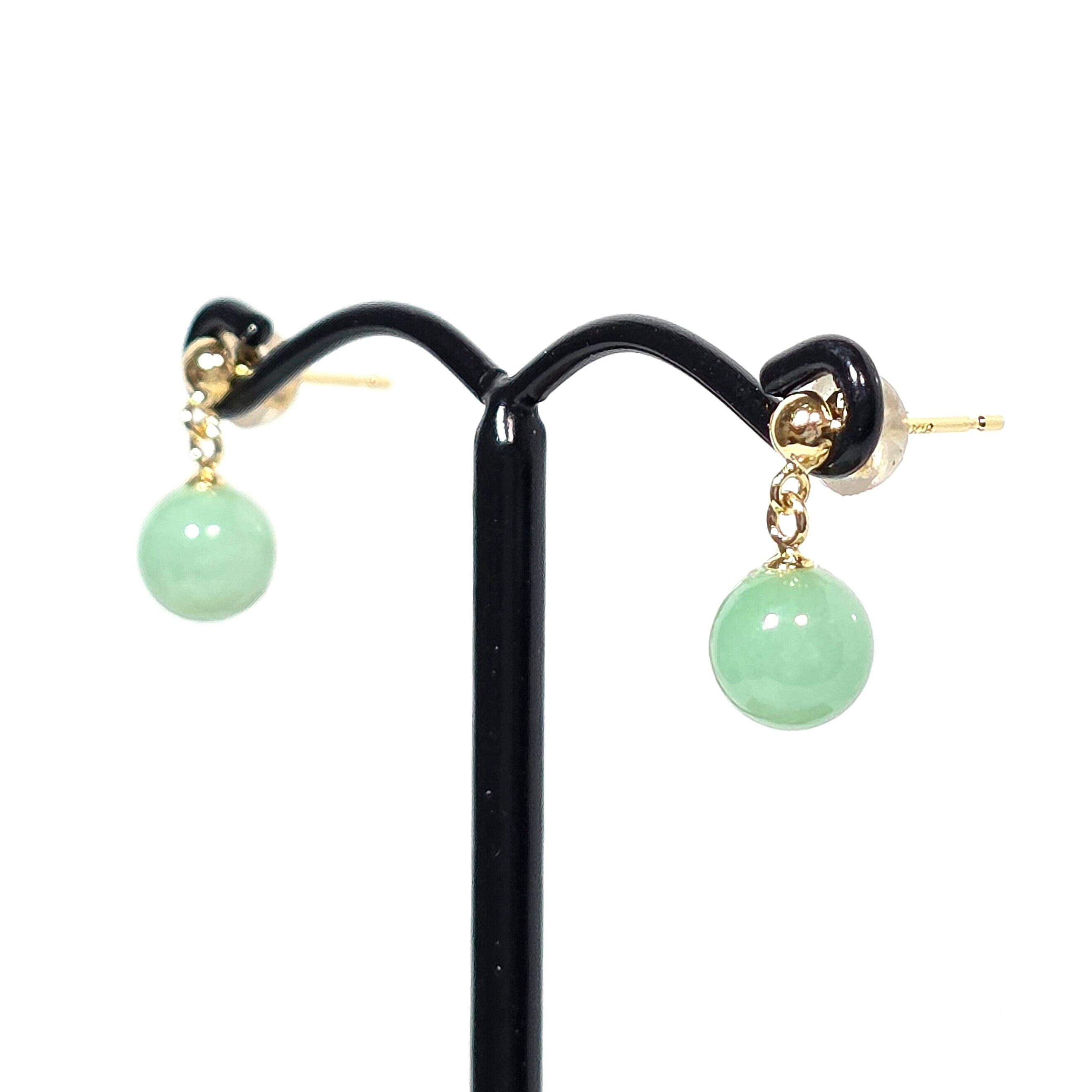 6㍉玉:K18:ロウカングリーン・糸魚川翡翠:ピアス BPS0301