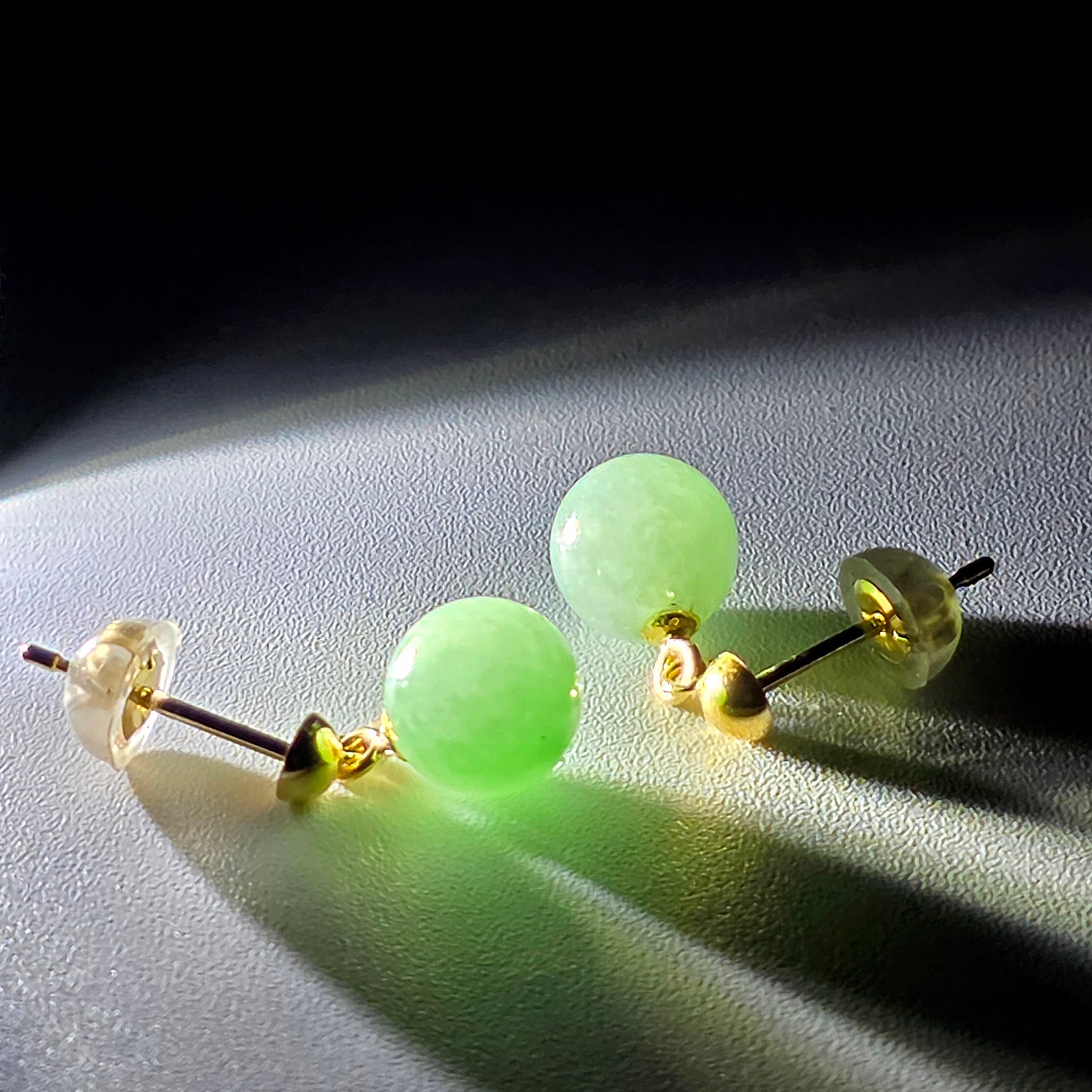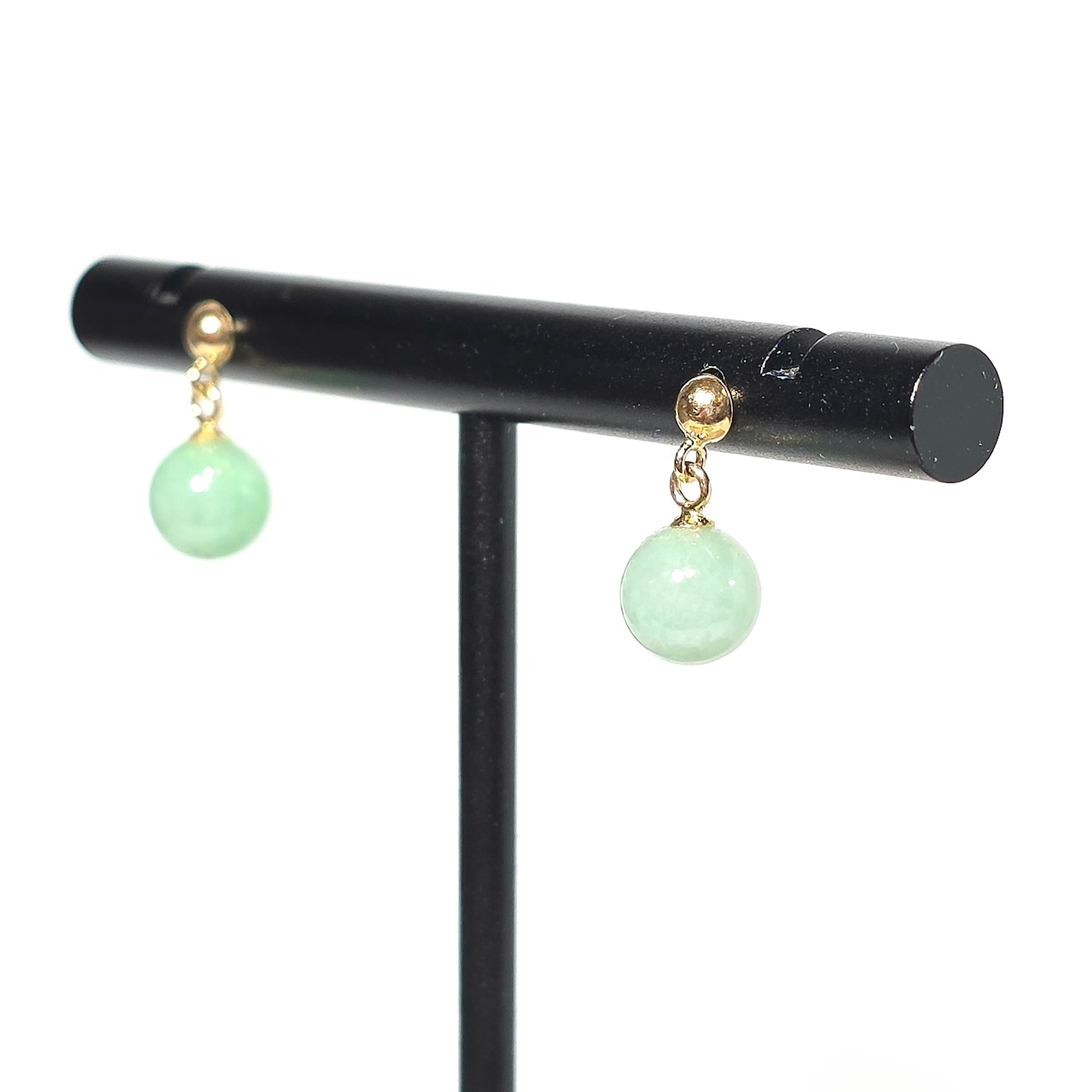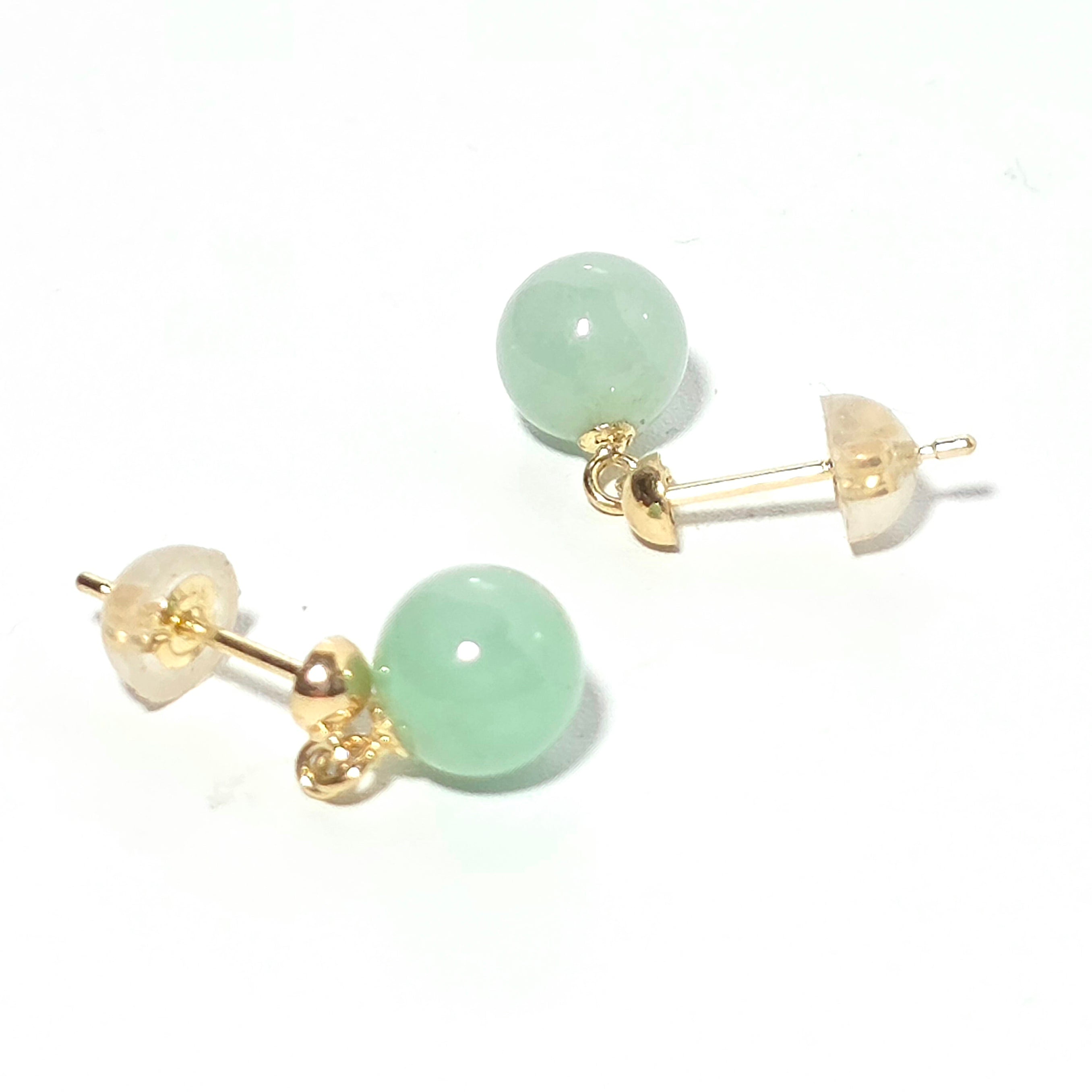 K18:6㍉玉:ロウカングリーン・糸魚川翡翠:ピアス BPS0324