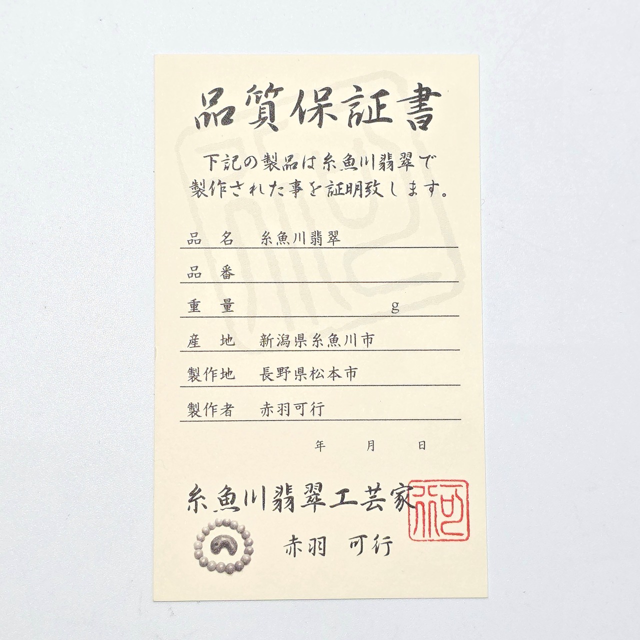 ⚫︎糸魚川翡翠で制作された証明として品質保証書をお付け致します。