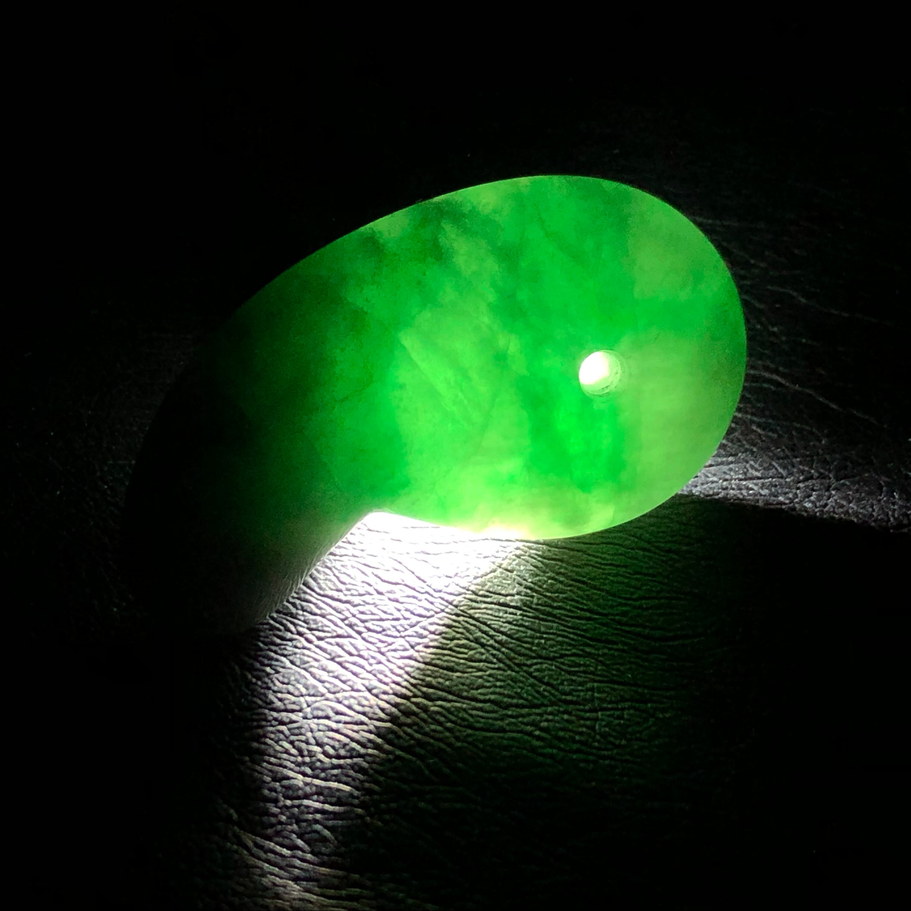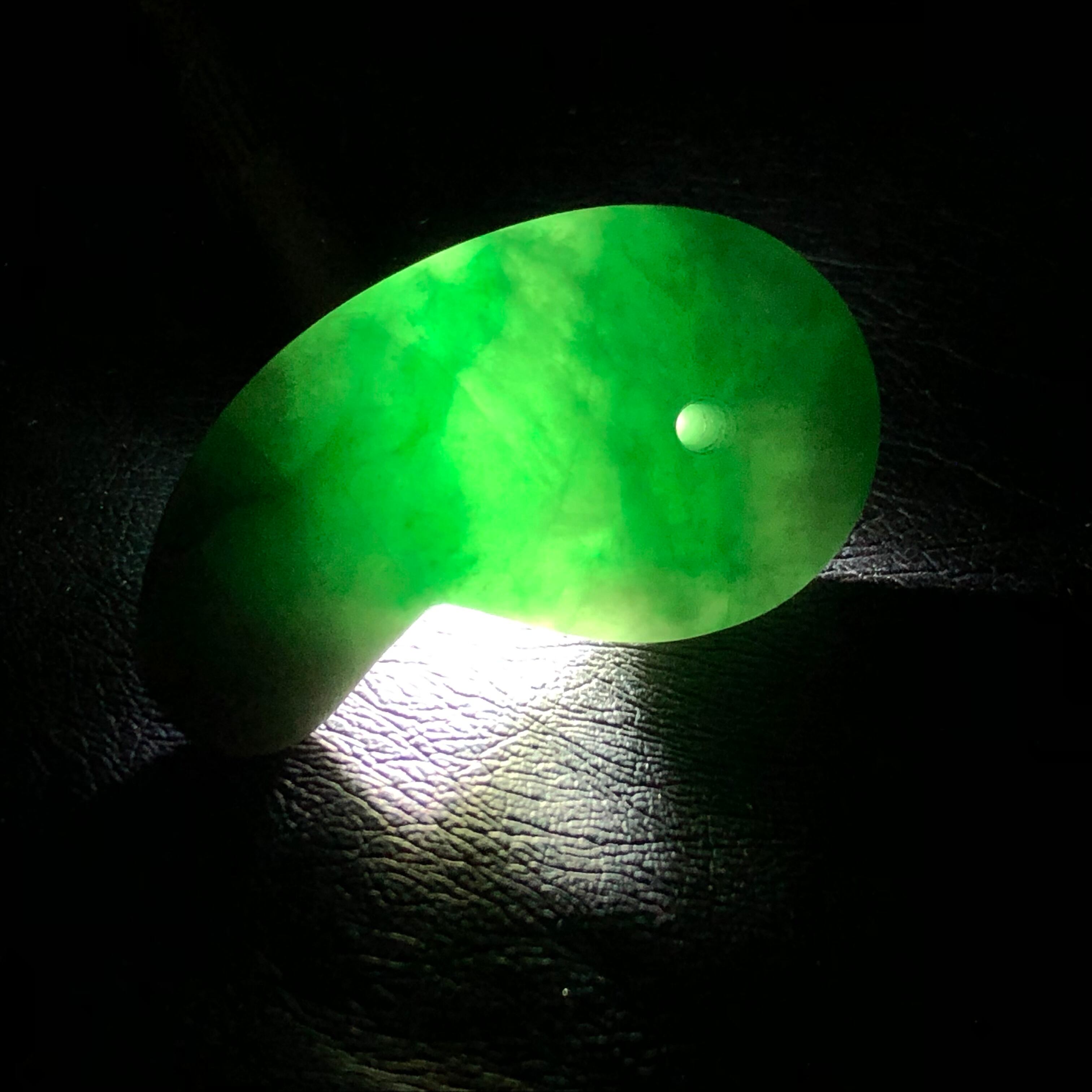 グリーン模様の透過光が綺麗な翡翠です
