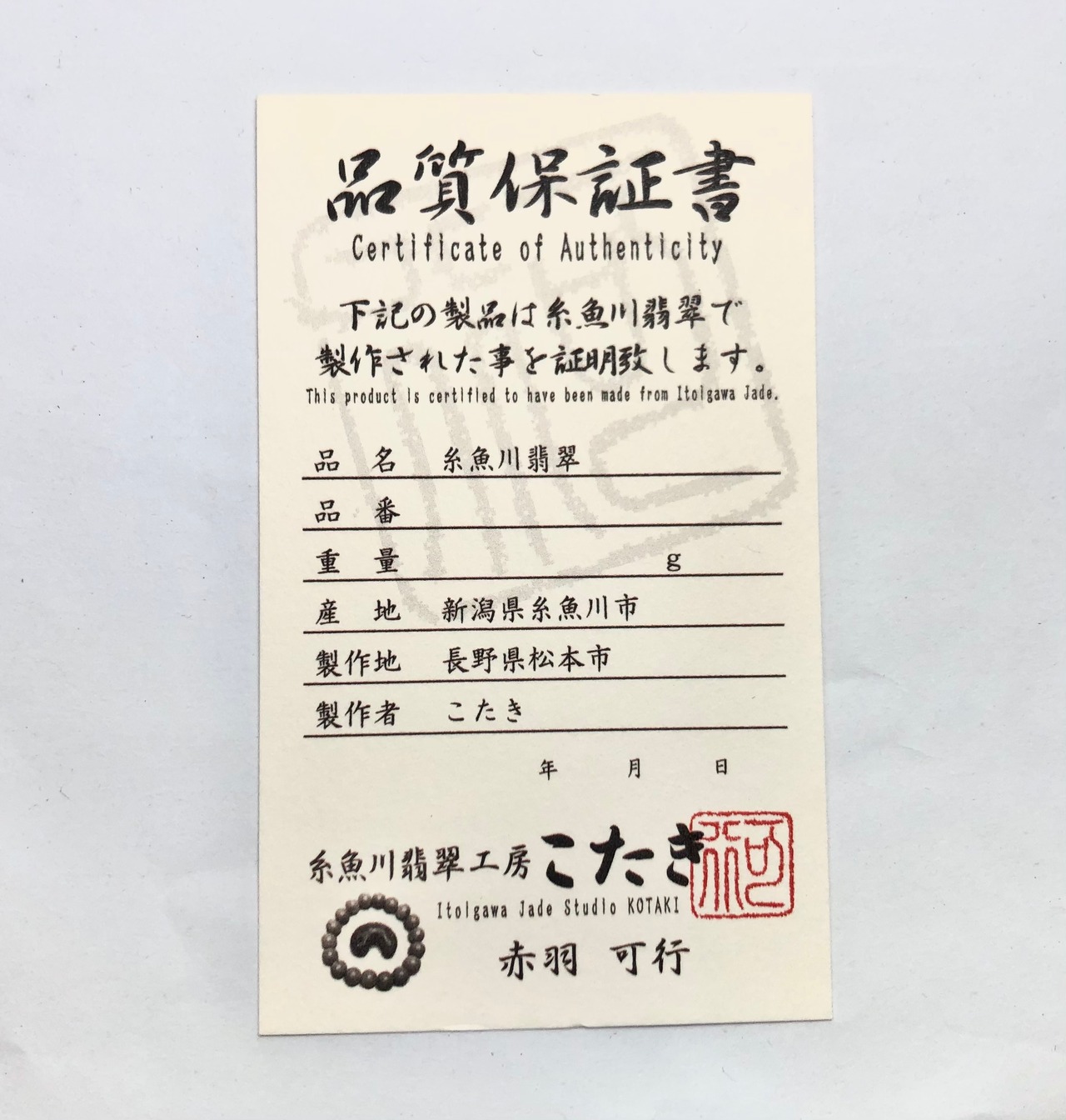 ⚫︎ 糸魚川翡翠で制作された証明として品質保証書をお付け致します。