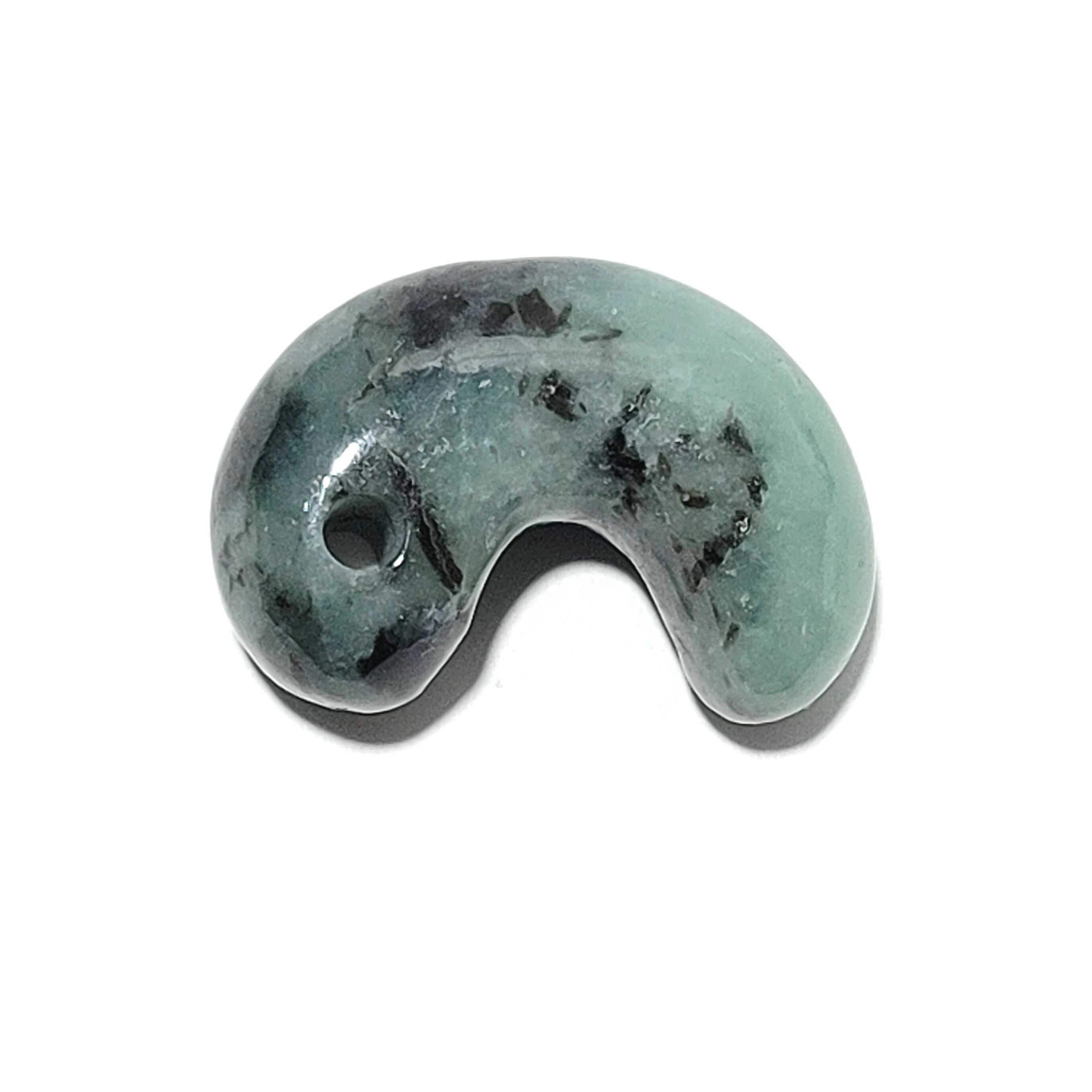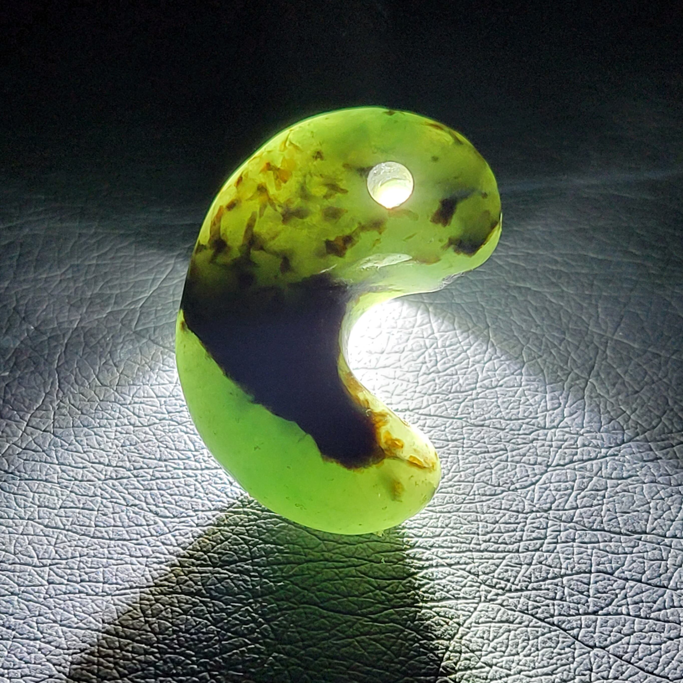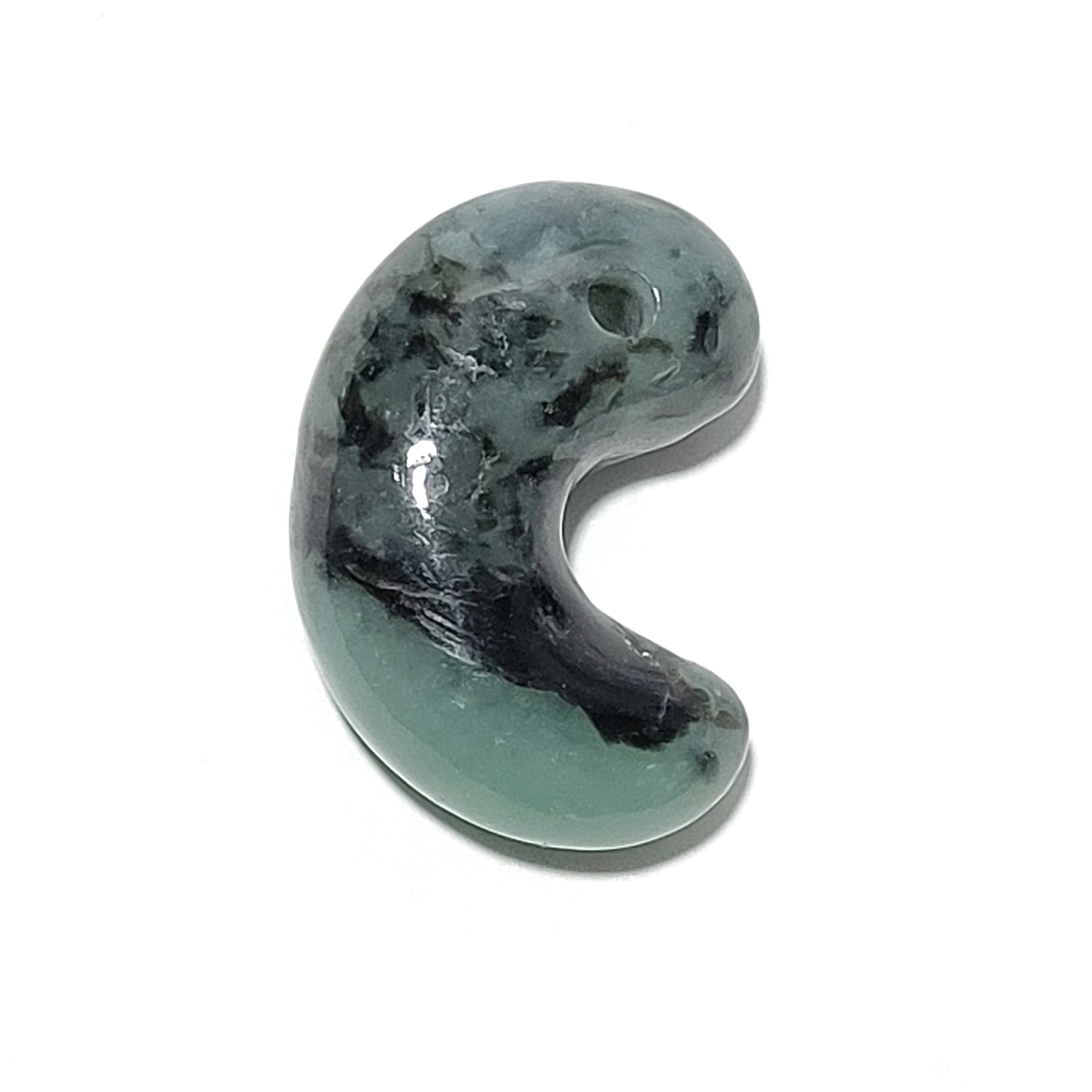 グリーンに角閃石の黒模様の勾玉